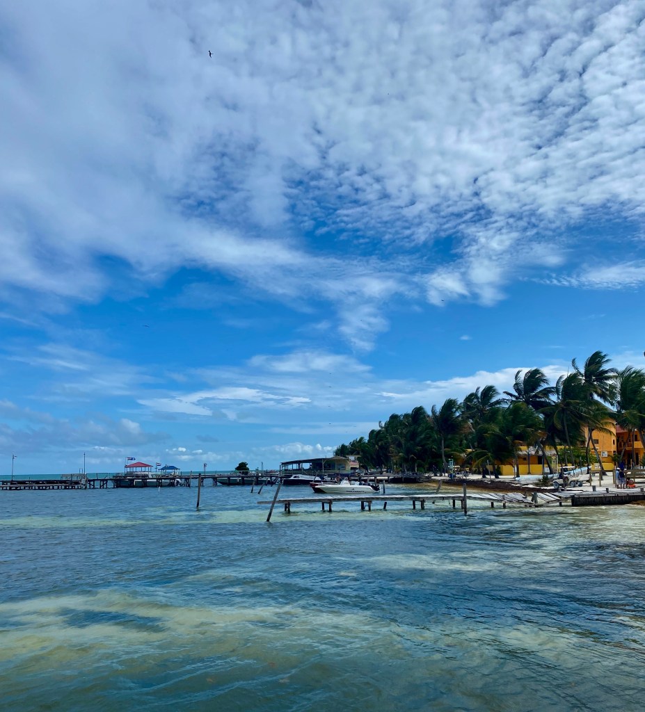 In my 2nd or 4th year of uni, my friend and I watched a Simon Reeve documentary about The America’s. In one episode, he was in Belize at a manatee sanctuary. In that moment, I said I wanted to go to Belize one day and I wanted to see the manatees… But, I’m getting ahead of myself. Our journey from Playa del Carmen to Belize started with a 5am drive to the Mexican border. Here we had a quick pit stop in the most bizarre loo I have ever experienced. (No door, no flush, no running water… Just vibes). After we crossed, we jumped into another bus and headed to Belize city. We caught the boat and finally arrived in Caye Caulker.