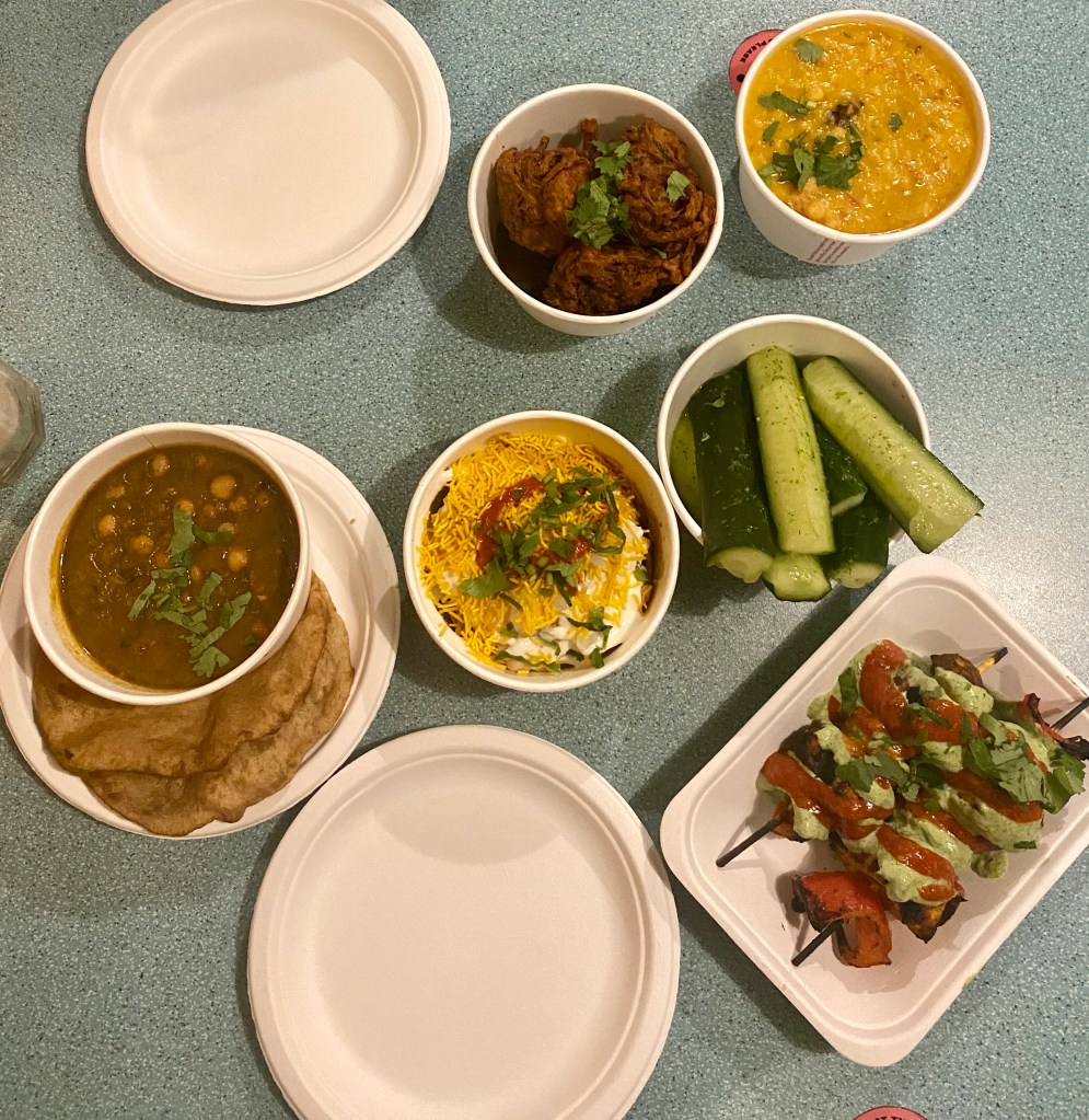 Described as a ‘Gujarati street food’ restaurant, food is served in take away style bowls with plates and cutlery that are actually made out of plant materials that are fully compostable. Everything has a casual feel and sharing is very much the aim of the game.