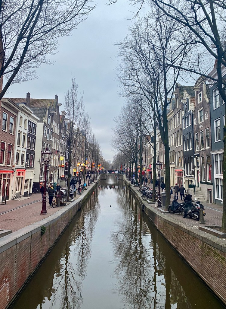 Amsterdam was showing off with blue skies and bright sunshine, but don’t get it twisted, it was absolutely freezing! Walking around Vondelpark was less of the relaxing stroll I was hoping for, as there was a constant whirring of bikes from all directions – I was seriously concerned about getting taken out by a cyclist, (who, by the way, do not wear helmets!). I can imagine this park being lush in spring/summer when the grass is green and trees in bloom. I ended up coming to a natural exit from the park and took that as my sign to see where the streets would guide me next. Initially, I ended up on what felt like Amsterdam’s equivalent of Bond Street with designer shops lining the road with Porche’s parked either side. There was even a no-fur protest going on outside of Tiffany. (Who knew jewellery companies used animal fur?).