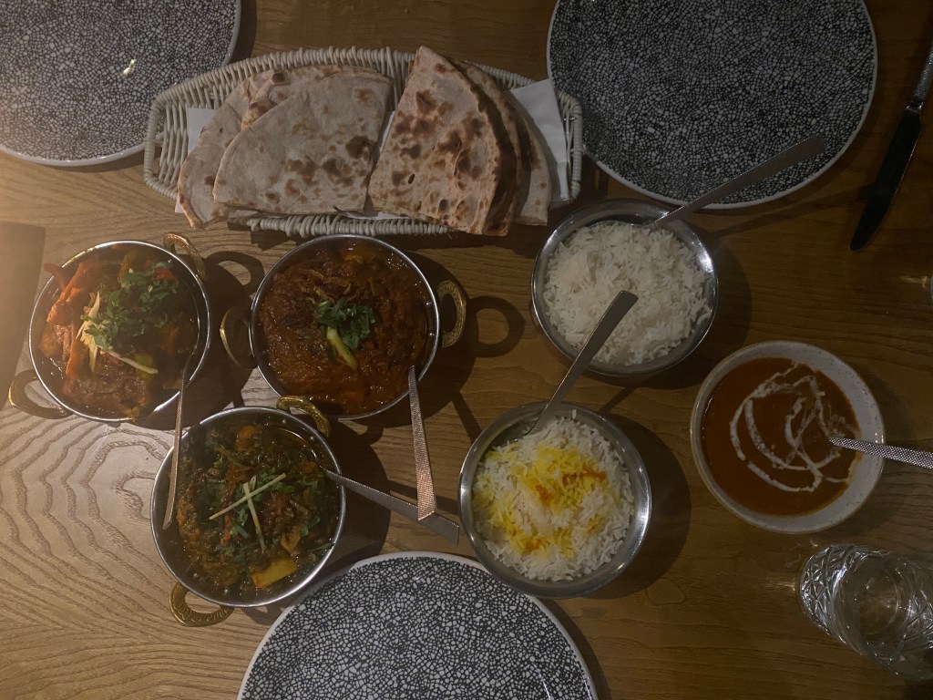 Dinner was at Dabbawal in Jesmond, (one of the posho sides of Newcastle). We arrived to what looks like a weird alley way but the pink neon sign invited us in to a bustling restaurant. We ordered the chef’s surprise menu and made sure to say we were pescatarian. We were brought out poppadoms, sweet potato chat, (increds!), bhel puri, and a starter of salmon and paneer. For mains we were given a serious spread: a prawn curry, a lentil curry and a veggie curry to share with steamed rice, pulao rice, naans and a veggie side dish. Everything was absolutely delicious and the portions are very generous – we actually didn’t manage to finish everything! Our food was washed down with some great cocktails. The chefs surprise is £26.50 each. With 2 cocktails on top, our total per person came to £48. I would say that walking in for dinner and the weekend would be difficult so it’s probably best to book.