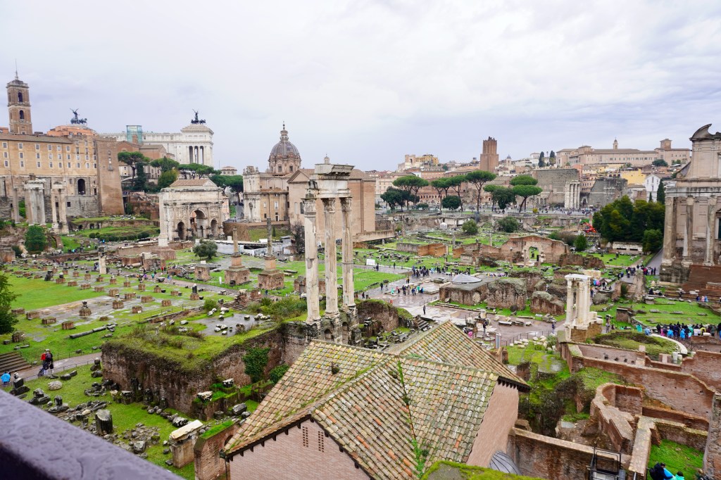 We all got headphoned up and started with our tour at the ruins of the Roman Forum which was the heart of the Roman Empire. Here, you’ll find Palatine Hill which is where it’s believed Rome was founded. It was a perfect look out spot strategically and so the first village was founded there. Back in the day, (being around 750BC), this was the home of emperors as the forum was the main square for all things, but now, only a little bit of one of these palaces remain.
