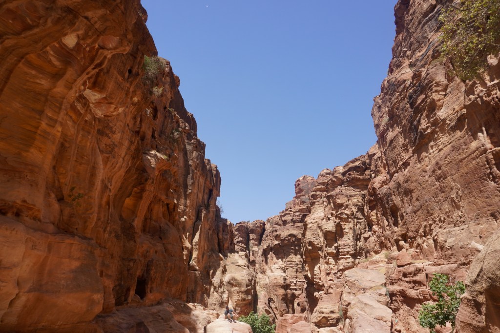 Eventually we made it to Petra, we paid our entrance fee which was 50JOD, (~£55), and eagerly headed in. It was a very hot day, (like 40°+ hot), and the sun was beating down so we slowly wandered along the dusty road and came up to our first rock carved formation. I have said it once but I’ll say it again but, how these architectural wonders were created pre-power tools is something I will never be able to comprehend. The wonder just kept on coming as we made our way through the Siq. This is a sandstone gorge, rising high creating a desperately needed shaded path to probably the most recognisable part of Petra – the Treasury.