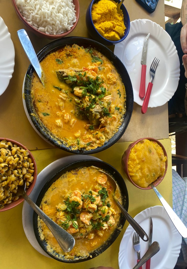 The African influence permeates through everything in Salvador: from the candomblé religion and the Orishas to acarajé, (a trad. dish made from bean paste fried in dende oil, shell on prawns put inside and topped with sauces) and moqueca, (of course, I had to try it at Dona Suzana’s Restaurant). Fun fact, the first medical school is in Salvador and medical degrees are free in Brazil!
