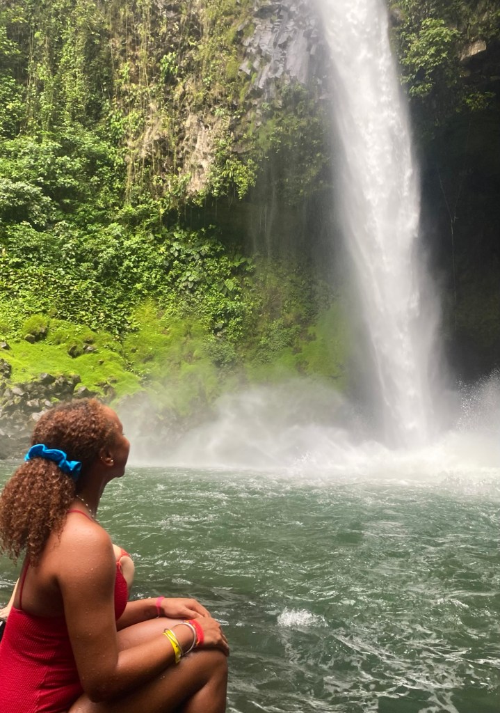 The following morning, I was picked up from my hostel and we drove out to La Fortuna waterfall. We climbed down the 500-odd steps and heard the roar of the water crashing into the pool below us. We promptly stripped off and went for a dip. I couldn’t deny that sitting on a rock, at the base of a waterfall in Costa Rica was an incredible experience and outweighed the irritation, aggravation and frustration that I’d felt the day before. Our day long tour continued with a volcano hike around the Arenal Volcano where we saw a viper, curled up on a leaf. It was very cute considering one bite would do you some serious damage, and by damage I mean almost certain death. We also saw a poisonous dart frog. Again super cute, super deadly. Our next frolic in nature was on the hanging bridges which were incredible, even for me who doesn’t like heights, and our day ended with a dip in the hot springs.