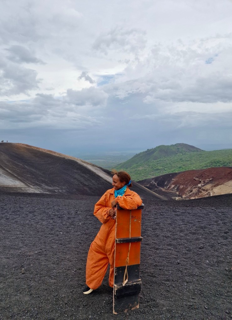 We visited the cathedral, which is beautiful, especially as the sun is going down and you can get a great view of the landscape. I did the volcano boarding which was an experience and a half. I’d heard horror stories of people really injuring themselves and before you get on the bus to drive to the volcano, they show you a video of someone shattering almost every bone in their body doing it, which filled me and my accident prone self with oh so much confidence. We drove out to Cerro Negro which is the youngest volcano in Central America, being just 175 years old and still very much active. The hike up is only about 30 minutes and, (with someone else carrying your board), pretty easy. Although it looks like an expanse of black lava rock, it’s really pretty in an abstract way, which is my fave kind of beauty. After an almost scarily brief safety demo., we hopped into our orange jumpsuits, covered our faces and boarded down the side of the volcano. I actually did get some speed at the start but I came off the board entirely. Imagine, I’m in a starfish position, sliding down this volcano, dragging the board behind me, panic slowly creeping in. I managed to come to a stop so once back on the board, I decided to take it easy. So easy in fact, that I won the prize for slowest speed down the volcano. Once everyone had made it down, we jumped into the now party bus, stopped off for some food with a local family, headed back to Leon to continue the party, claim my free shot for being a slow poke and wash the black dust off my body.